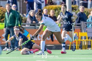 In het zonnige Sportpark Duivesteyn werd in de overgangsklasse dames de wedstrijd tussen de nummers 3 en 2 gespeeld, Cartouche D1 – Delta Venlo D1. Cartouche heeft héén verliespunt meer dan Delta Venlo, dus er stond iets op het spel. De dames van Cartouche pakten halverwege de voorsprong na al diverse grote kansen te hebben gehad, 1-0. Delta pakte echte het initiatief in het 2e kwart en zette de score weer op 1-1. Even leek het of Delta Venlo de voorsprong zou pakken maar de goal werd afgekeurd. De dames van Cartouche kwamen na de rust heel sterk terug uit de kleedkamers en pakten meteen de leiding, 2-1. En met nog een minuut of 6 op de klok werd het ook 3-1. Cartouche leek op rozen te zitten. Maar in het 4e kwart bracht Delta Venlo in de slotfase de spanning terug in de wedstrijd, 3-2. En met nog anderhalve minuut op de klok werd het Venlose offensief ook nog eens beloond met de gelijkmaker 3-3. Na het grootste gedeelte van de wedstrijd op voorsprong te hebben gestaan laten de dames van Cartouche zich jammerlijk in de laatste 4 minuten alsnog de winst ontglippen.