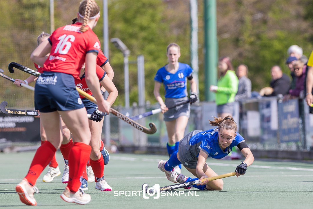 Koploper Ring Pass ontving runner-up NMHC Nijmegen. Kon Ring Pass het gat vergroten met Nijmegen of zou Nijmegen inlopen op Ring Pass? Het was Ring Pass dat in het tweede kwart de score opende op een zonnig sportpark. Lang hield Ring Pass stand en hadden ook het overwicht in de wedstrijd. Het was dan ook zuur voor de dames van Ring Pass dat een tegentreffer in de slotminuten viel. Voor de speelsters voelde het als verlies maar zoals coach Van Roon het verwoordde “Jullie hebben keihard gewerkt en gedomineerd en niet verloren.” Het is enorm spannend in de top van de promotieklasse want ook Victoria heeft zich aan de kop gemeld na winst dit weekend. Met nog zes wedstrijden te spelen verdedigt Ring Pass een voorsprong van twee punten op Nijmegen en Victoria.