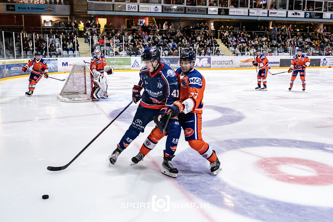 Hoewel HIJS HOKIJ gedurende de wedstrijd de controle had, ontbrak het aan de scherpte die een dag eerder nog tot een monsterzege leidde. Blessures van Jacky de Zwart en Matthieu Desautels in het tweede en derde periode droegen bij aan de spanning. Ondanks een sterke comeback van de Eindhovenaren wist HIJS HOKIJ de overwinning over de streep te trekken.