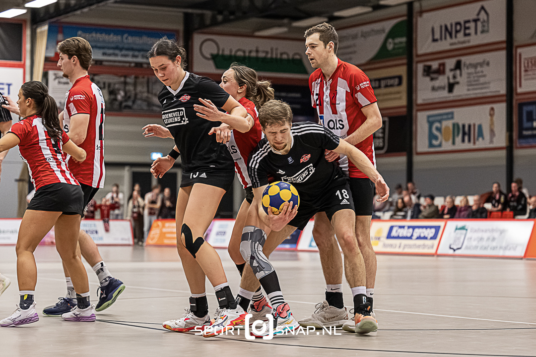 In de Korballeague 2 stond de wedstrijd DeetosSnel/QLS tegen KVS/Groeneveld Keukens op het programma, de nummer 2 tegen de hekkensluiter. KVS begon sterk en zette al snel een voorsprong op het scorebord. Maar DeetosSnel werd snel wakker en draaide de stand in haar voordeel om. Na een minuut of 10 was het 5-3. Een moeizame fase volgde met de nodige blessures. Met de rust was het dan ook pas 7-5 in het voordeel van de thuisploeg. In een rumoerige 2e helft, waarin de nodige discussies met het arbitrale duo plaatsvonden, kon KVS geen vuist meer maken. DeetosSnel pakt, hetzij moeizaam, de punten. Eindstand 18-14.
