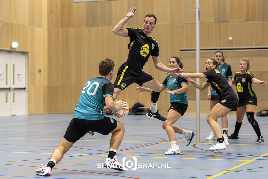 Duidelijk was dat beide ploegen deze wedstrijd graag wilde winnen. Met stevige duels en twee fanatieke ploegen ging het dan ook lang gelijk op. Maar Dunas wist in de slotfase de winst naar zich toe te trekken. Eindstand 13 – 17.