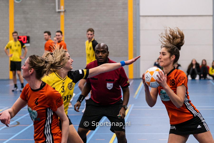 Die Haghe speelde niet slecht, creëerde zelf ook kansen om te scoren maar wist deze niet te benutten. Eigenlijk behaalde alleen Sander Snaphaan in scorend opzicht een voldoende. Via 17-9 werd het uiteindelijk 20-11 bij rust. Die Haghe moest in de kleedkamer een ander strijdplan bedenken om het tij nog enigszins te keren.
