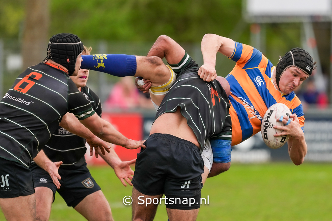 Het begin van de 2e helft was weer voor HRC2 met in de 2e minuut een try Jono Schenck. Conversie van David Weersma bracht de stand op 14-22. Daaropvolgend miste RRC een penalty, scoorden ze nog wel een geconverteerde try (14-29). David Weersma liet de Haagse via een penalty wat verder aansluiten (17-29) en in 21 ste minuut kwam daar nog een try met conversie voor HRC bovenop: 24-29. RRC wist bijna direct toch weer wat afstand te nemen met een try. Ook deze conversie werd echter gekilled door HRC (Jono Schenck 24-34). Rustige momenten langs de lijn waren er echter geen moment meer. Nog geen 3 minuten later werd er door de Haagse gescoord (27ste minuut try door Tyren Kroos en conversie van David Weersma 31-34) en weer 3 minuten verder was het captain Olly White die – samen met David Weersma – the thuisteam eindelijk weer op voorsprong zette (38-34). Met 34ste minuten op de klok was het een maul die de volgende try (met conversie) voor HRC inluidde (45-34). 2 minuten verder versprong het bord weer nu naar 45-34 (RRC scored zonder conversie). Het beide team toegestroomde publiek stond dan weer met ingehouden adem, dan weer de longen uit het lijf te schreeuwen tot RRC in de extra tijd scoorde en converteerde 45-46….Je kan kennelijk niet alles hebben….